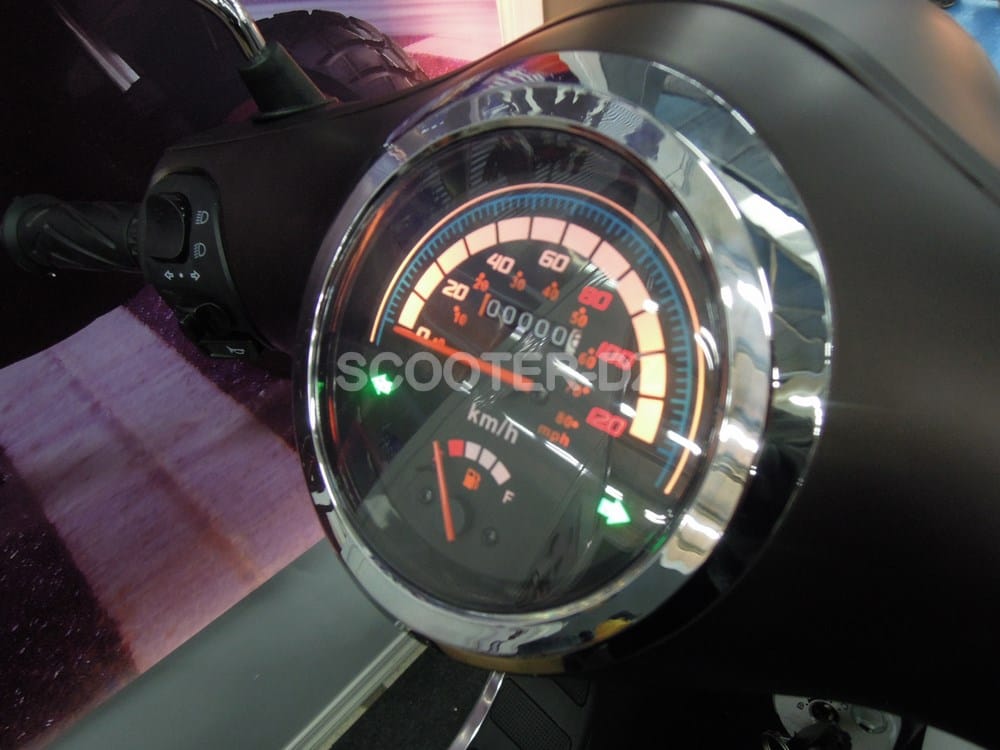 Pour l’aspect pratique, le AS Motors Lion 125 est doté d’un tableau de bord simple et analogique avec un totalisateur de kilomètres, un compte tours de vitesse et une jauge à essence.