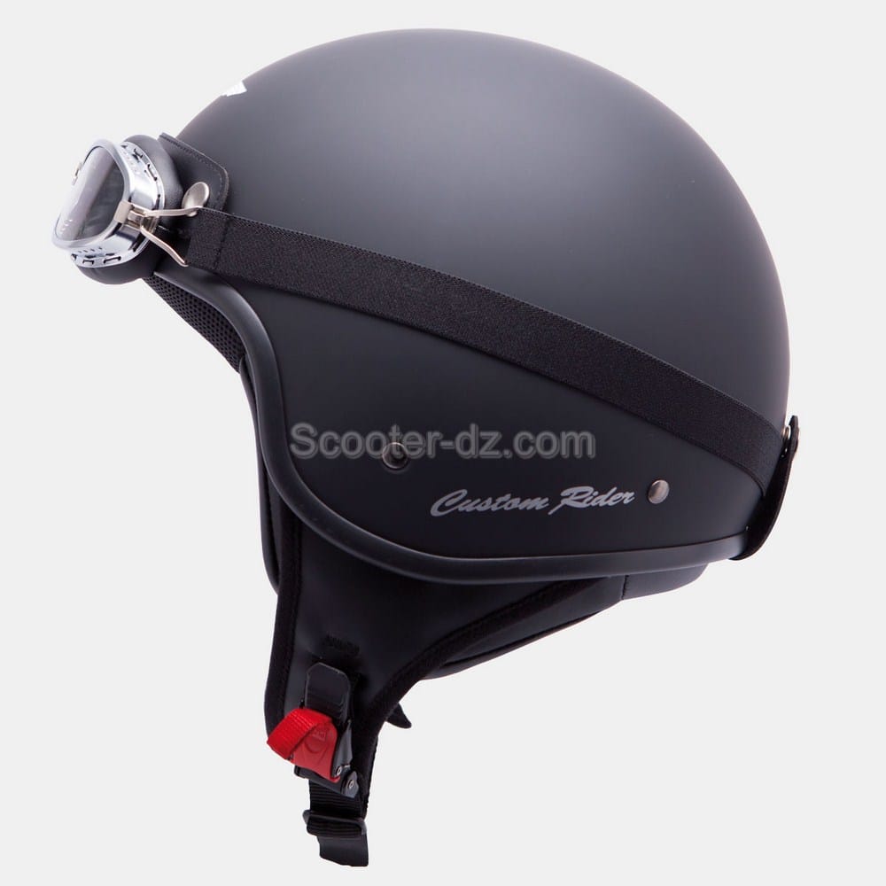 Le casque Jet Custom Rider dispose d’une coque en polycarbonate et d’un système de fermeture à boucle micrométrique. Ce casque jet existe en une seule taille de calotte. Il est livré avec sa paire de lunettes et sa visière pare-soleil. Il bénéficie aussi des homologations internationales : ECE/ONU 22.05.P – NBR 7471 – SNELL USA – NTC 4533 – DOT