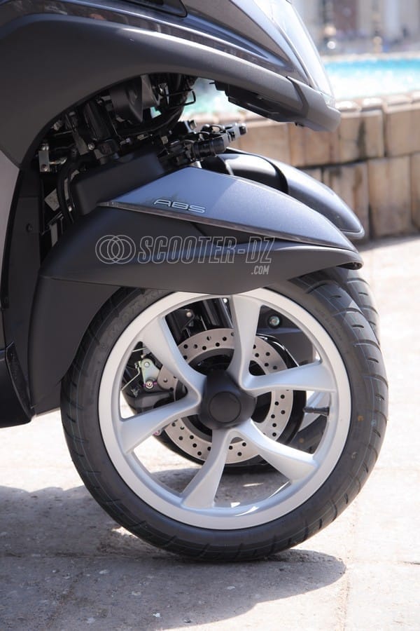 Les grandes roues de 14 pouces à caractère fort et audacieux portent un train- avant doté du système ‘multi-essieux directeurs’ qui permettent aux roues, liées par un parallélogramme en aluminium, de s’incliner tout en restant parallèles afin de donner au conducteur un sentiment de stabilité et de souplesse.