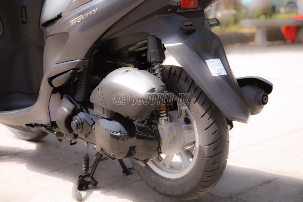 Le Tricity est équipé d’un nouveau moteur 4 temps à refroidissement liquide de 125 cm³ qui procure de bonnes accélérations dès les plus bas régimes, doublées d’une souplesse de conduite à plus grande vitesse. Le moteur bénéficie de systèmes d’admission et d’échappement spécialement conçus pour améliorer les performances dans les milieux urbains. La capacité du réservoir qui affiche 6.6 litres offre une autonomie de 220km.