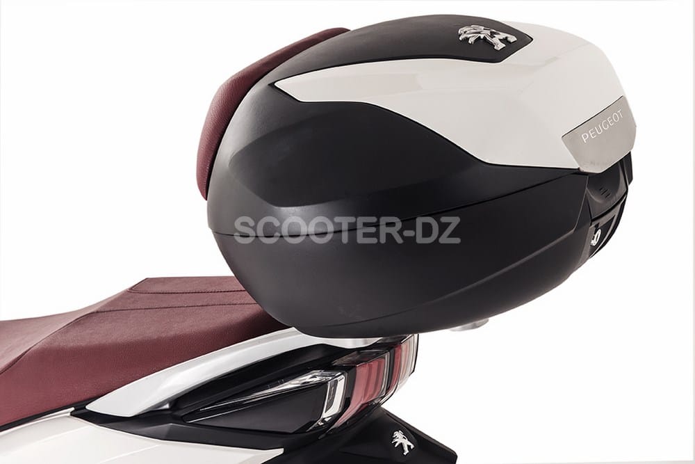 Dans sa version Allure, il est également équipé d’un top case de 37 litres de série avec système de fixation exclusif Peugeot et il est doté aussi d’un dispositif « clé unique » permettant l’ouverture du top case avec la même clé que celle utilisée pour démarrer le véhicule.